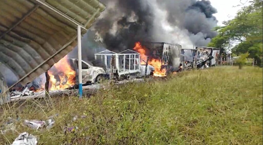 Xalapa, Ver.- La mañana de este martes en la zona norte del estado de Veracruz fueron incinerados varios vehículos oficiales y de empresas privadas por integrantes del Frente Nacional de Lucha por el Socialismo, al parecer en protesta por el asesinato de uno de sus compañeros ocurrido el fin de semana