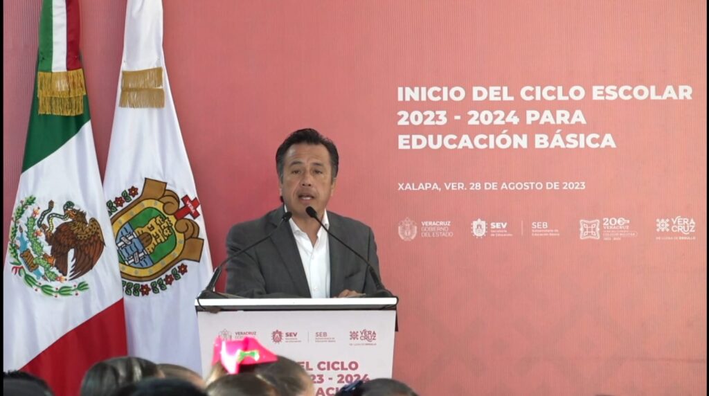 Xalapa, Ver.- El gobernador de Veracruz, Cuitláhuac García Jiménez aseguró que el inicio del ciclo escolar 2023-2024 implica nuevos retos y formas de aprender, con un significado diferente y resaltó el apoyo que darán los libros de texto gratuitos, mismos que siguen el “ojo del huracán”.