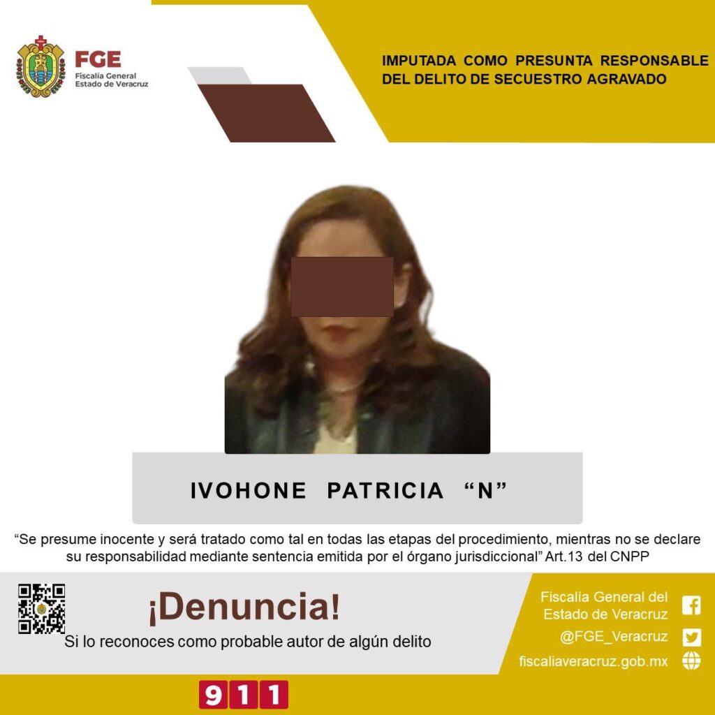 Xalapa, Ver.- La Fiscalía General del Estado realizó imputación en contra de Ivohone Patricia N” como presunta responsable  del delito de secuestro agravado, hechos suscitados en Poza Rica el pasado 3 de abril del presente año, en agravio de una víctima de identidad resguardada.