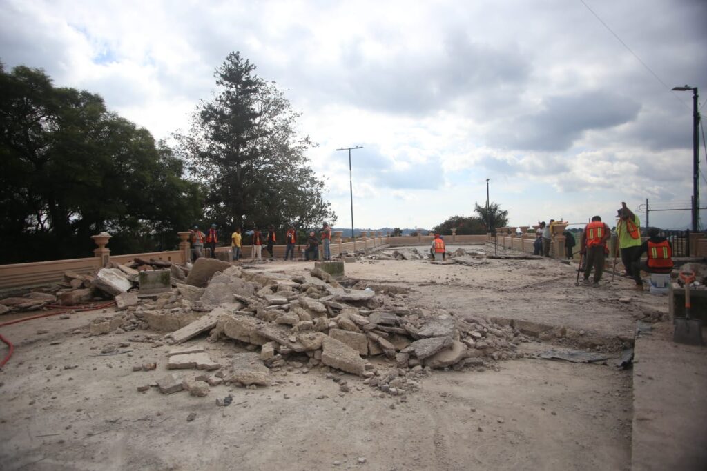 Esta obra incluye el retiro y reubicación de la Pérgola que colocó la administración del exalcalde Hipólito Rodríguez, la cual se desarmó y el Ayuntamiento de Xalapa la reubicará en otro lugar; saneamiento la losa del mirador con una serie de filtraciones;, revisión del sistema de canales de desagüe.