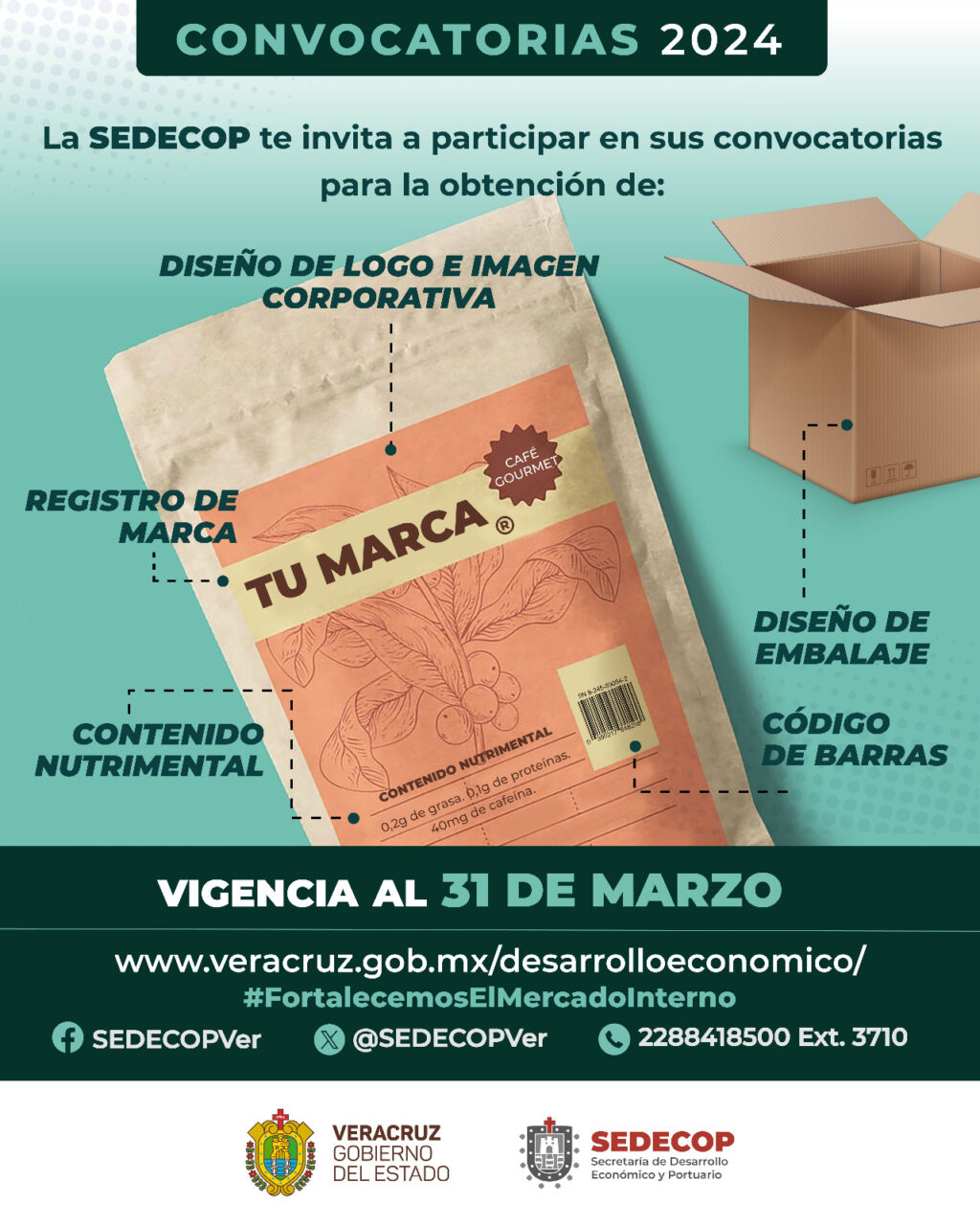 Para mayores informes, puedes comunicarte a la Dirección de Promoción a Emprendedores y MiPyMEs en el teléfono (228) 841-85-00, extensión 3710, o consultar las bases en redes de la SEDECOP y la página http://www.veracruz.gob.mx/desarrolloeconomico/.
