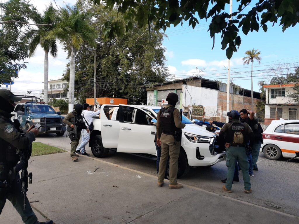 Xalapa, Ver., 30 de enero de 2024.- Para garantizar la tranquilidad de las familias y preservar el orden, esquema impulsado por el Gobernador del Estado, Cuitláhuac García Jiménez, efectivos de la Secretaría de Seguridad Pública (SSP), a través de Policía Estatal y Fuerza Civil redoblaron las acciones preventivas, mediante la instalación de filtros de revisión y las Bases de Operaciones Mixtas en Tuxpan.