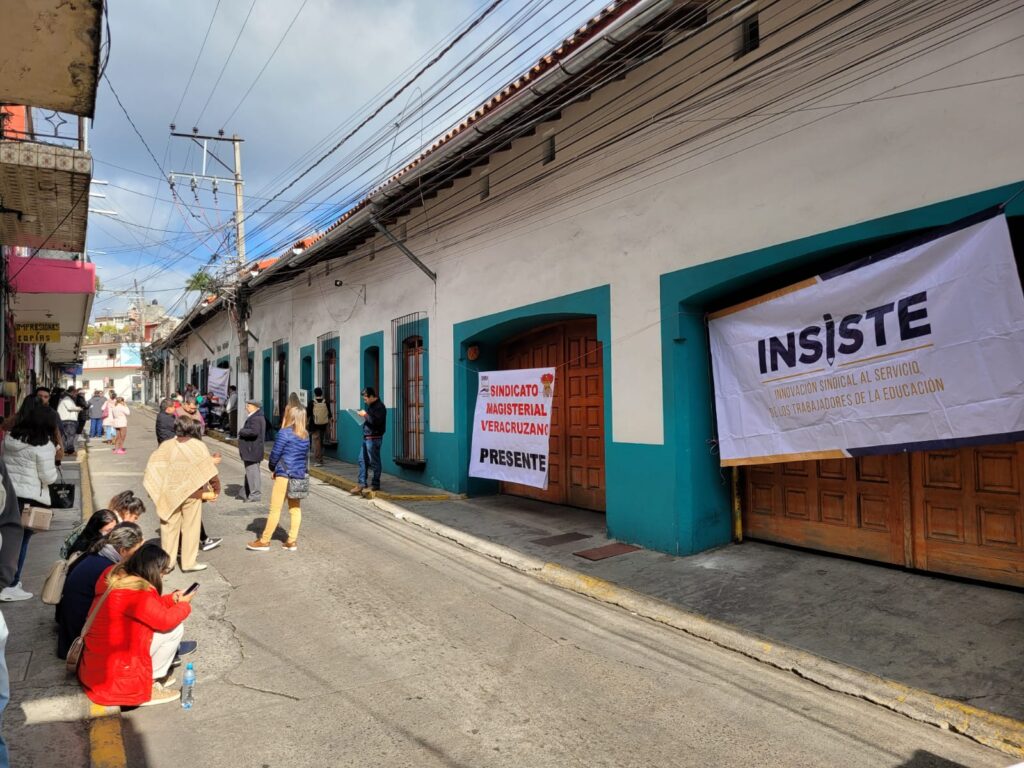 Xalapa, Ver.- Integrantes de cuatro sindicatos magisteriales tomaron las instalaciones del Seguro Social de los Trabajadores de la Educación del Estado de Veracruz (SSTEEV), para exigir la destitución del director gerente Francisco Enrique Pérez Carreón, a quien acusaron de pretender obtener una base, una vez que termine su gestión.