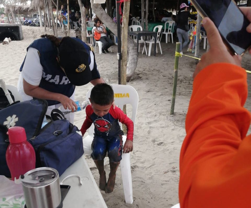 Se atendió también al menor de 4 años Sebastián Mata Ramos, originario del Estado de México, quien presentó una laceración en el pómulo derechos al ser arrollado en la orilla de la playa.