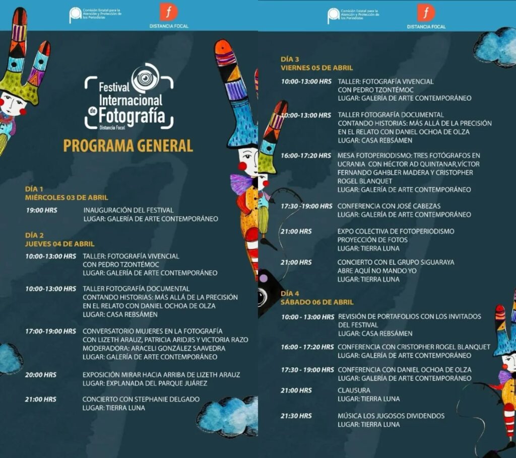 En esta edición, el festival que se realizará del 3 al 6 de abril contará con la presencia de fotografos como: Pedro Tzontemoc, Lizeth Arauz, Patricia Aridij, Lizbeth Aráuz, Victoria Razo, Stephanie Delgado, Daniel Ochoa Olza, Héctor Quintanar, Cristopher Rogel, Oscar Martínez; entre otros.