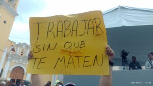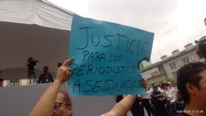 Además de las demandas laborales, grupos de manifestantes también alzaron la voz para exigir justicia por los crímenes de periodistas ocurridos en Veracruz.