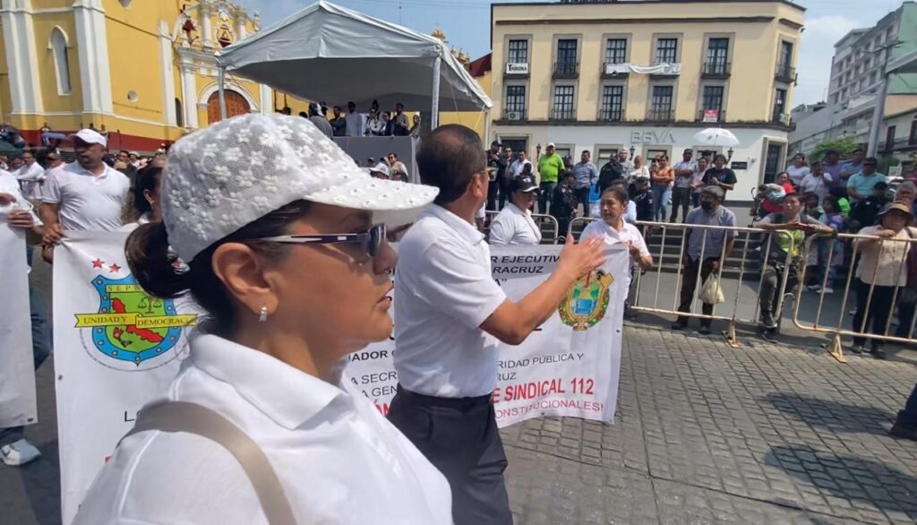Xalapa, Ver.- Las manifestaciones con exigencias a las autoridades estatales no se hicieron esperar durante el Desfile conmemorativo al Día del Trabajo, entre ellas la de trabajadores del Instituto de Espacios Educativos de Veracruz, quienes exigieron al gobernador cotizar en el Instituto de Pensiones del Estado (IPE).