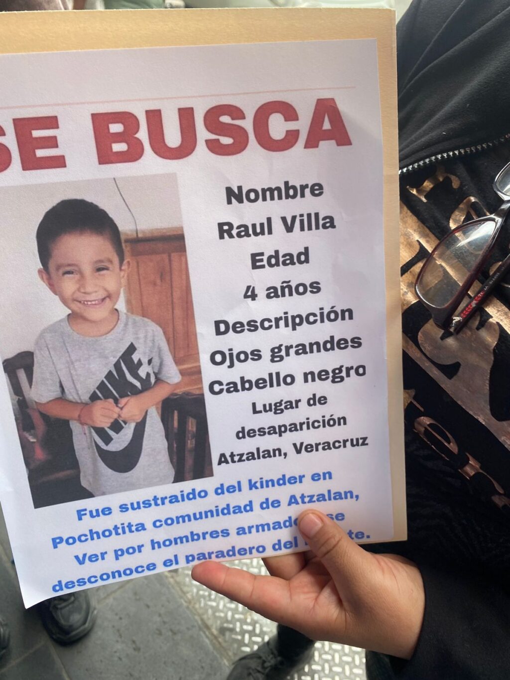 “El viernes entraron a su casa con violencia, se lo llevó el primo hermano de su papá, Raúl Villa y hay dos detenidos pero faltan esas dos personas, fueron cuatro. Los andamos buscando, pero necesitamos apoyo para peinar la zona. No ha habido apoyo de parte de la Fiscalía de Jalacingo, me vi en la necesidad de pedir apoyo y el auxilio para la pronta recuperación de Raulito”.