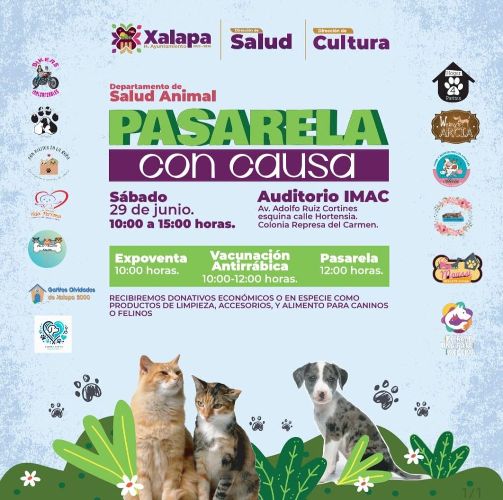 Xalapa, Ver.- Con el objetivo de continuar con las acciones de promoción de la tenencia responsable, cuidado y protección animal, integrantes de distintos albergues y el Ayuntamiento, a través de las direcciones de Salud y Cultura, presentaron la “Pasarela con Causa”, que se llevará a cabo el sábado 29 de junio.