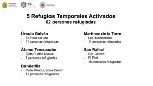 Redacción SFN *Fueron activados cinco refugios temporales y resguardadas 62 personas *Mantienen vigilancia de los ríos Actopan, Cazones, La Antigua,...