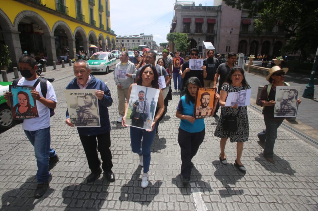 Xalapa, Ver.- A nueve años del asesinato del fotoperiodista Rubén Espinosa Becerril junto con la activista Nadia Vera, la modelo Mile Virginia Martín, la maquilladora Yesenia Quiroz y la trabajadora doméstica Olivia Alejandra Negrete, familiares y amigos se reunieron esta mañana en la Plaza Lerdo para exigir justicia para las 5 víctimas.