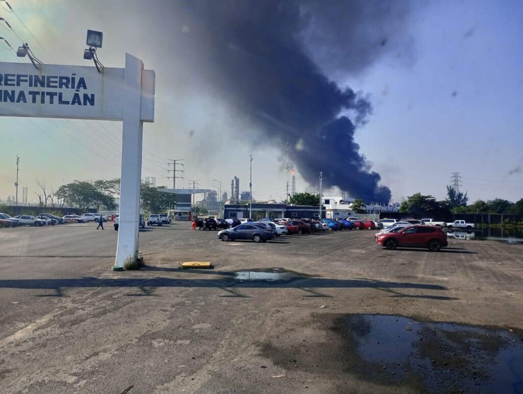 En imágenes de la refinería se observan columnas de humo negro tras el incendio ocurrido en el separador 6 de la planta combinada “Maya”.