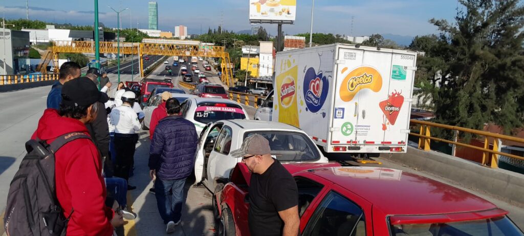 Xalapa, Ver.- La mañana de este jueves al rededor de las 8 de la mañana, se registro una carambola en puente conocido como «La Joroba», ubicado en la zona de Las Trancas, con seis vehículos involucrados en el accidente dejando como saldo solo daños materiales.