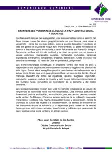 Yhadira Paredes Xalapa, Ver.- En el comunicado de este domingo, la Arquidiócesis de Xalapa resaltó que en México y Veracruz...