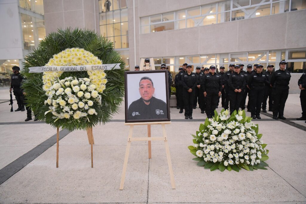 En las instalaciones de la dependencia, la fiscal Verónica Hernández Giadáns brindó sus condolencias a su familia y destacó el valor mostrado por el elemento ministerial.