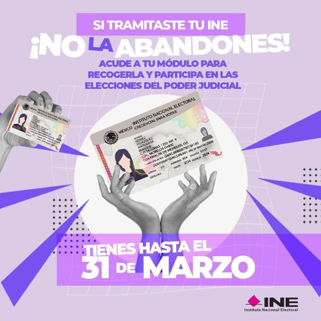 Detalló que dentro del INE hay credencial que llevan hasta dos años sin seré reclamadas, sin embargo, enfatizó que el periodo para recogerlas está por concluir y quienes no lo hagan perderán la posibilidad de contar con este documento electoral.