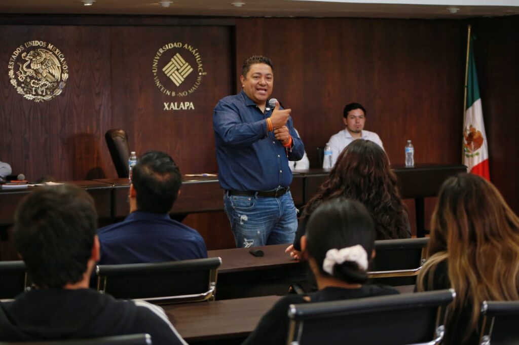 Xalapa, Ver.-Román Moreno, candidato a la alcaldía de Xalapa por Movimiento Ciudadano, sostuvo este lunes un diálogo abierto con estudiantes de la Universidad Anáhuac, donde escuchó sus inquietudes y presentó algunas de sus principales propuestas de gobierno.
