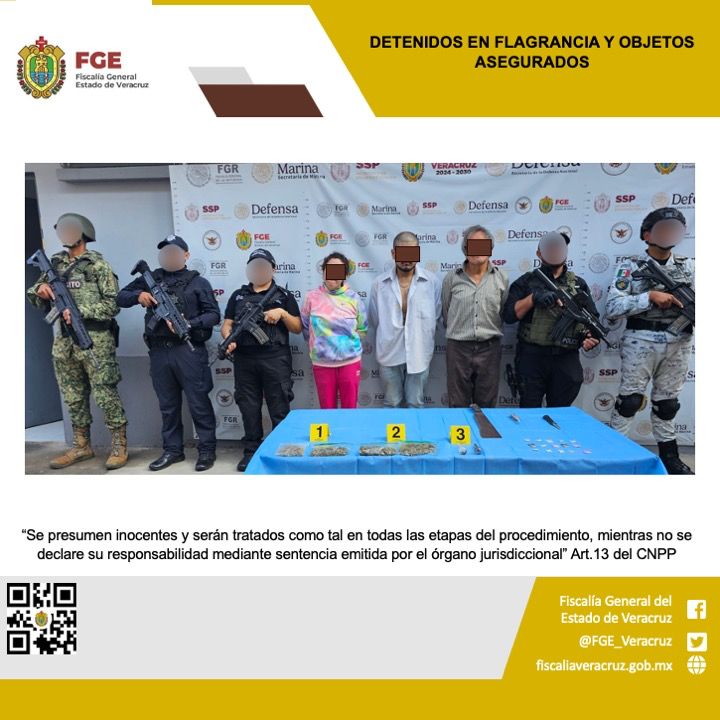 Los tres detenidos fueron presentados ante el fiscal correspondiente de la Fiscalía Regional Xalapa para que defina su situación jurídica.