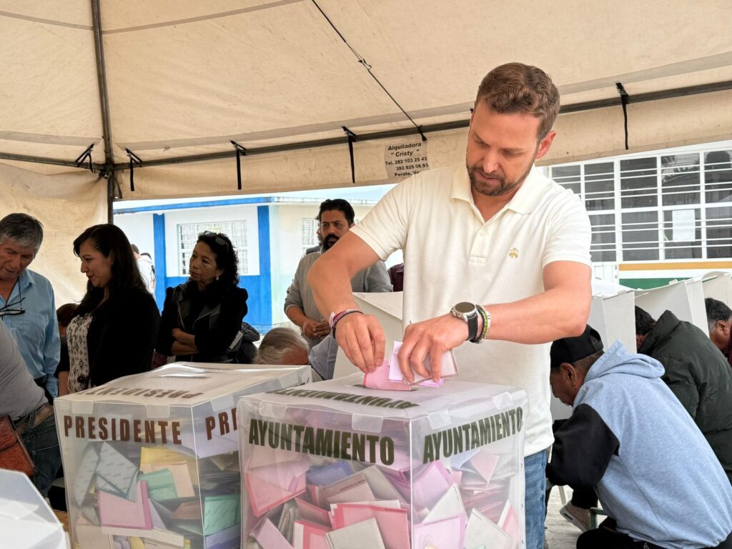 Acompañado de su familia, el diputado morenista llegó al medio día de este domingo a la casilla ubicada en la escuela