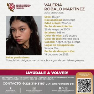 *FGE informa que Valeria Robalo se encuentra ya con su familia Reportada como desaparecida desde el sábado, fue una ausencia voluntaria...