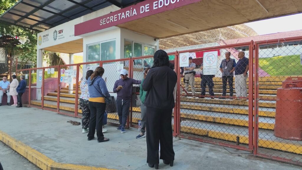 El grupo arribó a las oficinas de SEV ubicada en Lázaro Cárdenas en Xalapa, y colocó cadenas en los accesos para impedir el ingreso del personal administrativo y docente.