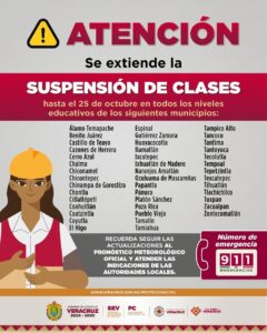 Yhadira Paredes Xalapa, Ver.- Se mantiene la suspensión de clases en 43 municipios afectados por las lluvias e inundaciones...