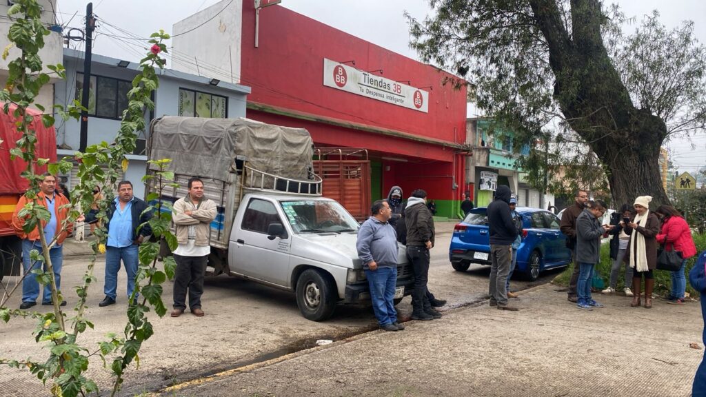 Xalapa, Ver.- Trabajadores del Rastro Municipal de Xalapa exigen el pago de salarios completos, así como de equipo de trabajo y mejores condiciones laborales, por lo que cerraron la circulación en la calle Mártires 28 de Agosto.