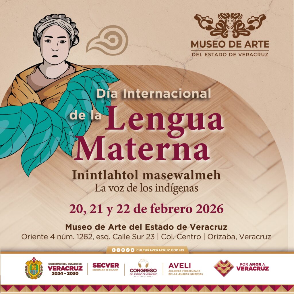Xalapa, Ver.-.- La Secretaría de Cultura de Veracruz (SECVER), en colaboración con el Congreso del Estado y la Academia Veracruzana de las Lenguas Indígenas (AVELI), invita a la jornada conmemorativa del Día Internacional de la Lengua Materna Inintlahtol masewalmeh: La voz de los indígenas, que se realizará del viernes 20 al domingo 22 de febrero en el Museo de Arte del Estado de Veracruz (MAEV), ubicado en Orizaba. Todas las actividades serán gratuitas.