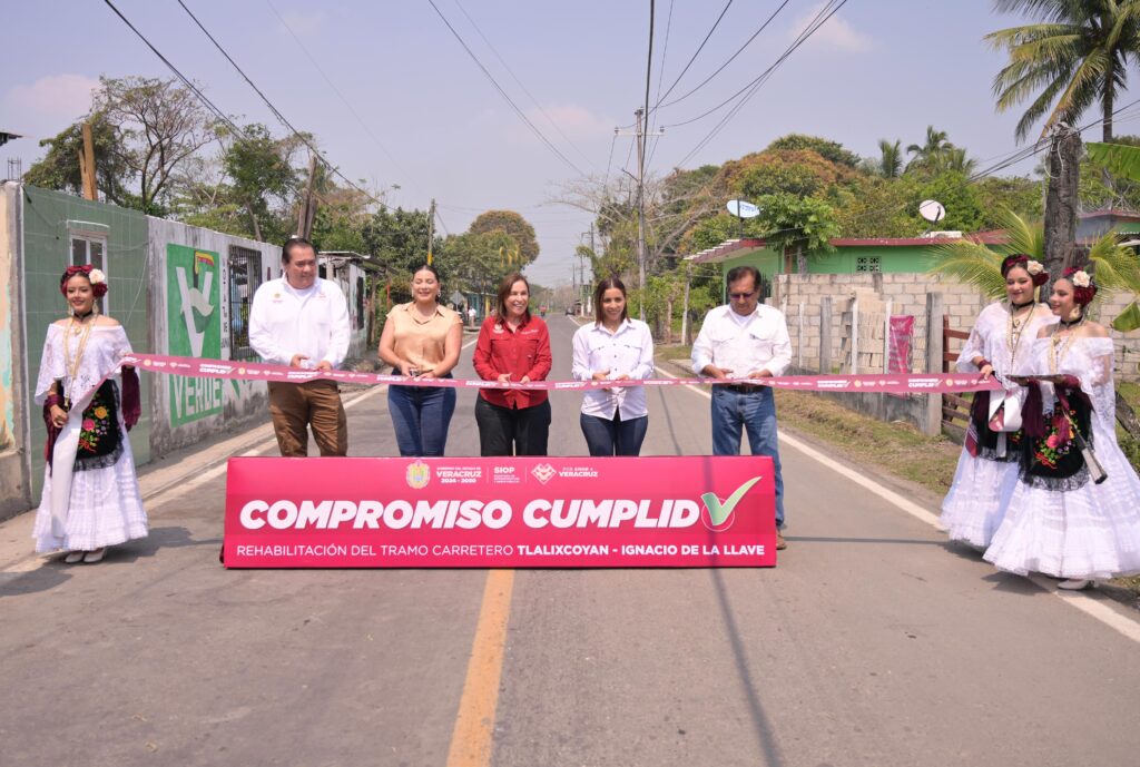 Este fin de semana, acompañada del secretario de Infraestructura y Obras Públicas, Leonardo Cornejo Serrano, y las alcaldesas Malú Santiago Ponce, de Ignacio de la Llave, y Elvia Illescas Loyo, de Tlalixcoyan, así como de pobladores, encabezó el corte del listón inaugural del tramo Ignacio de la Llave–Tlalixcoyan, que marca la conclusión de los trabajos.