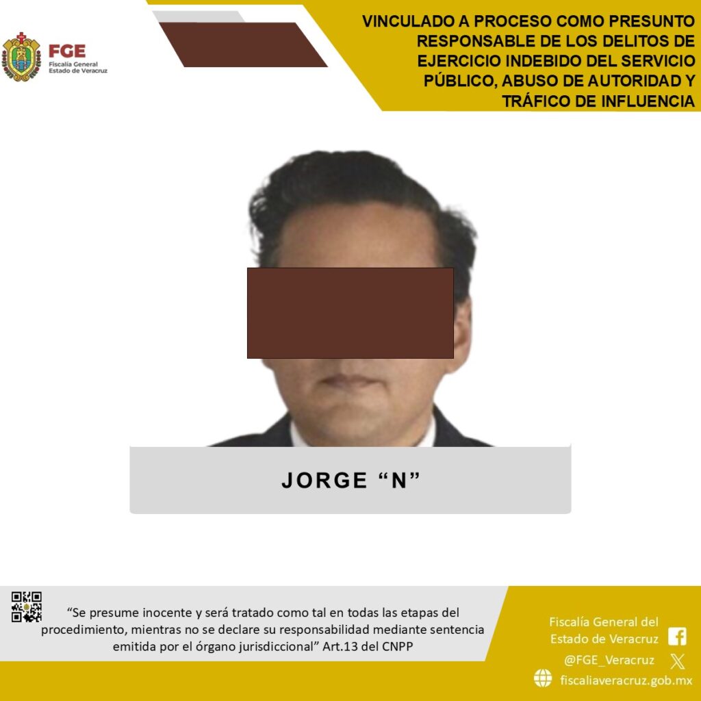 Xalapa, Ver.- El ex fiscal de Veracruz, Jorge “N” fue vinculado a proceso por los presuntos delitos de ejercicio indebido del servicio público, abuso de autoridad y tráfico de influencias.